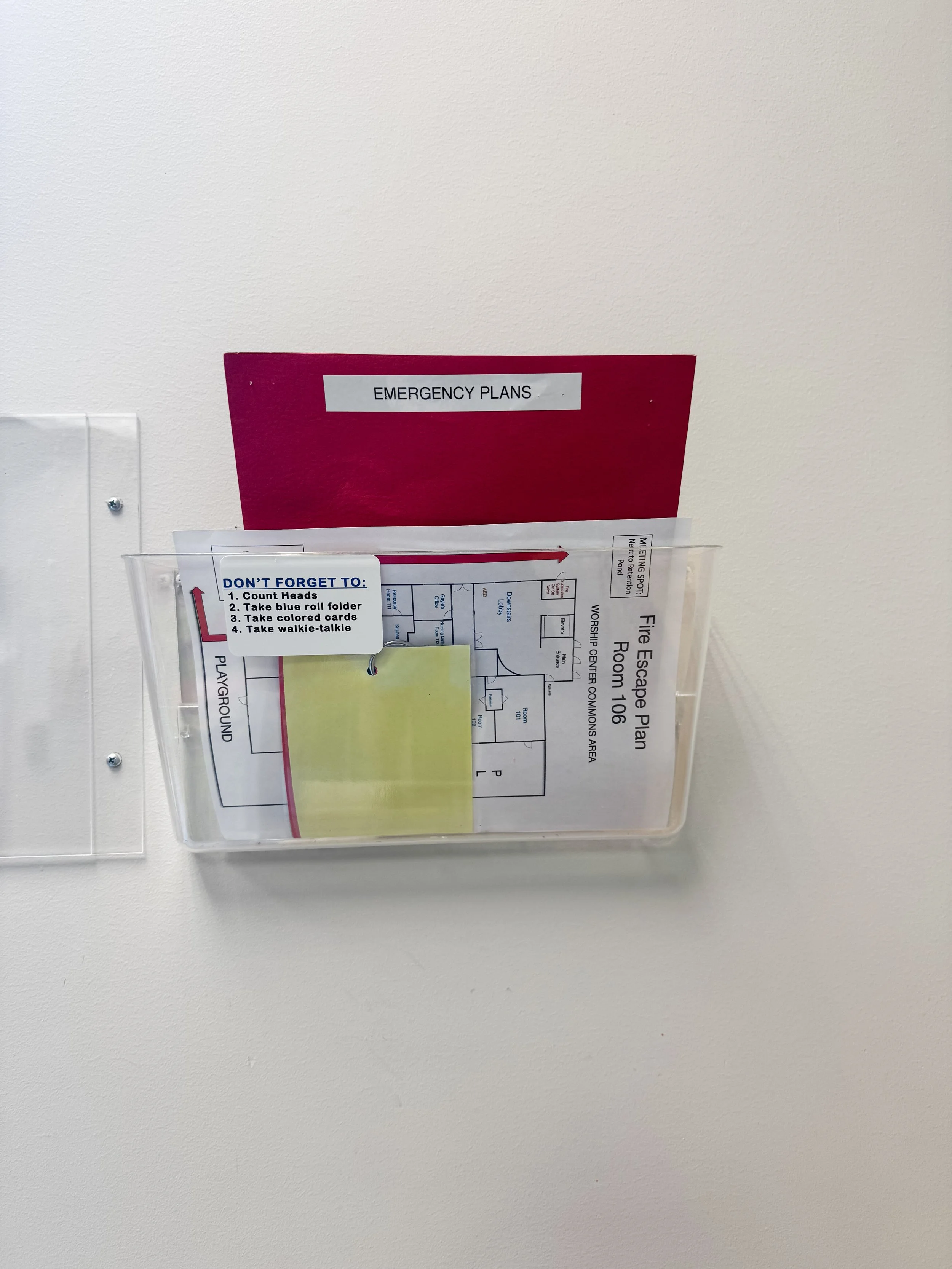 Each room is also equipped with an emergency plan for inclement weather or a fire